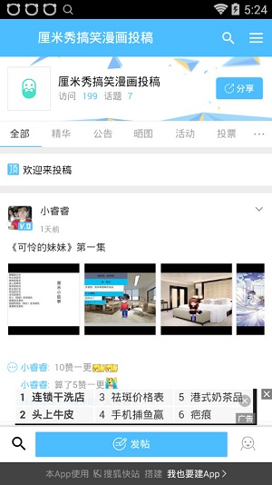 厘米秀漫画社软件最新版本下载安装是一款漫画阅读软件,软件内为用户提供漫画资源投稿途径,用户可以将自己创作的漫画智能投递,同时软件内还为用户提供了丰富的漫画资源阅读,如此好用的漫画阅读软件,你还等什么?欢迎有需求的小伙伴来橘子下载站下载阅读!