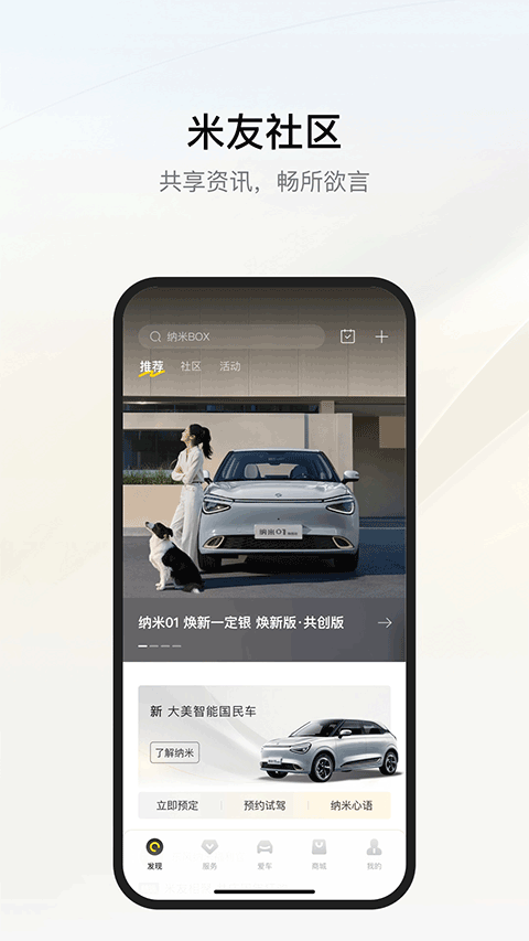 东风纳米 APP 是东风汽车集团专为纳米品牌车主及潜在用户打造的智能移动服务平台,集“选车购车、车联网控、生活服务、社群互动”于一体,旨在提供全方位的智慧车生活体验。用户不仅可以通过 APP 全面了解车型配置、预约试驾及在线订购个性化爱车,还能在激活车辆后实现远程车控(如解锁、空调启停)、实时查看电量续航及充电状态,彻底告别实体钥匙焦虑;此外,平台还整合了附近网点查询、充电地图导航、维保预约及车主社区交流等功能,让用车生活更加便捷、高效且充满乐趣。