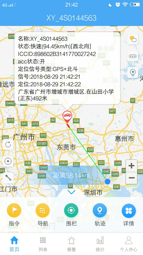 实时位置监控:在地图首页,可直观看到车辆当前的精确位置、行驶速度、方向及海拔高度,支持地图缩放与标记。