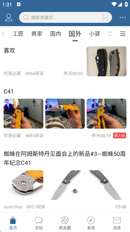 2、专业版块细分:平台设立了野外生存、探险户外、健身骑射、Bushcraft(丛林工艺)、军事爱好、艺术刀具、古今刃器及新奇小物等专属版块。无论你是想咨询勘探技术,还是分享刃器收藏,都能找到对应的精准讨论区。