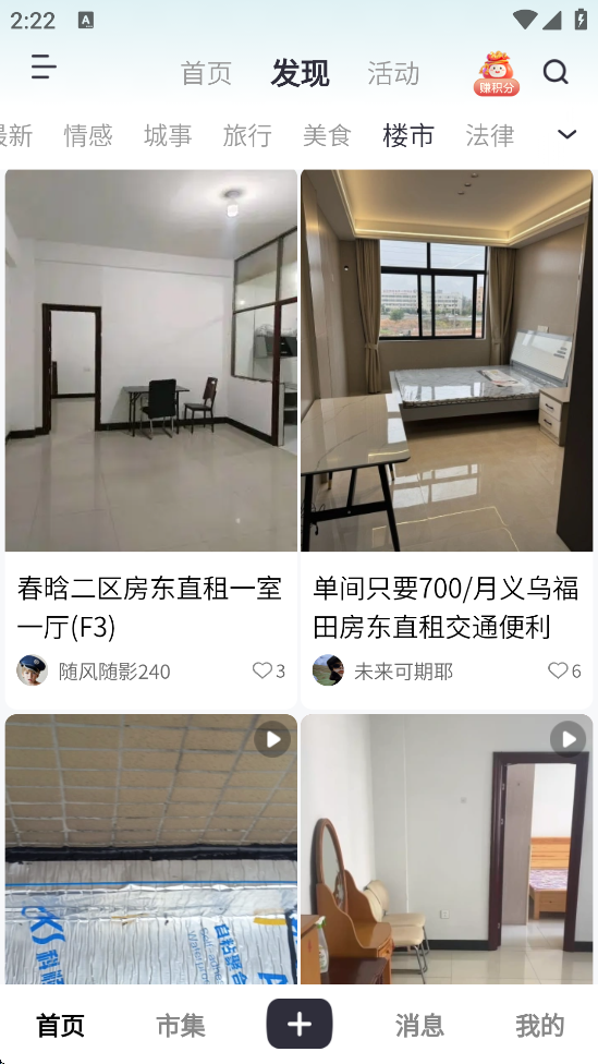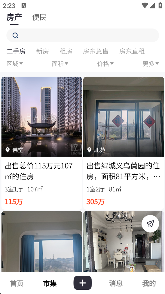 1、定位版块:点击底部【社区】或首页的【分类信息】入口,选择【房产楼市】或直接点击【找房子】标签。