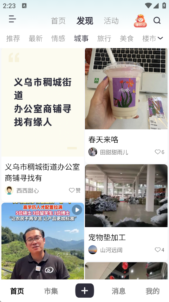 2、本土化内容生态:平台内容由义乌本地采编团队与数百万市民共同构建,涵盖了从市场动态到现代都市发展的方方面面,甚至包括只有本地人才懂的“方言梗”和“义乌记忆”,归属感极强。