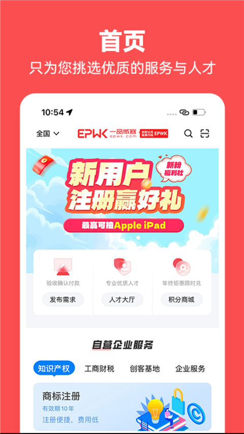 5、覆盖全链条企业服务:不仅涵盖LOGO设计、APP开发、文案策划等创意类服务,还整合商标注册、专利申请、版权登记、财税代理等专业企业服务,实现一站式解决。