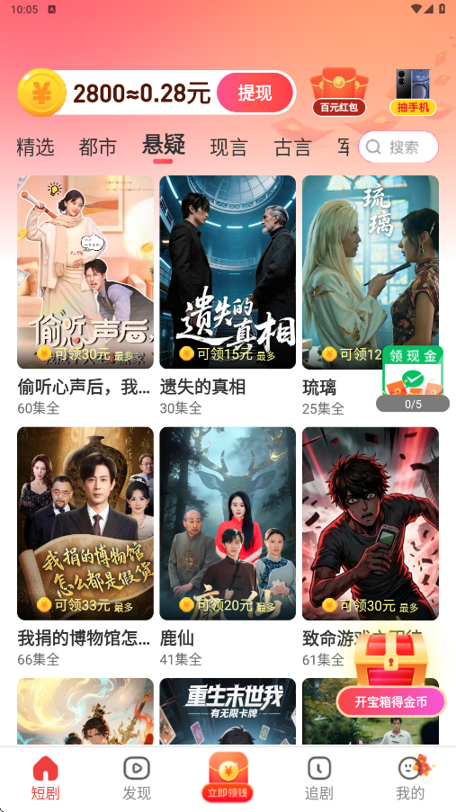 3、边看边赚金币:通过观看广告或完成签到、邀请好友等任务,用户可获得虚拟货币并兑换真实收益,实现“看剧赚钱”。