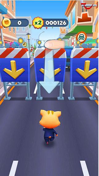 1、玩家只需左右滑动屏幕即可控制小猫躲闪。