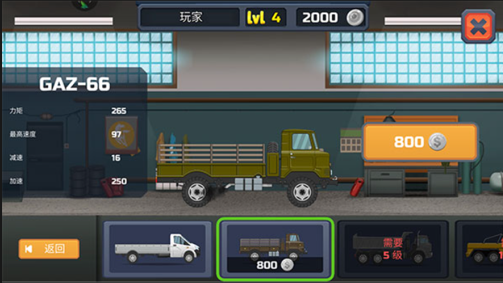 2、玩家可以对刹车片和轮胎进行升级,也可以喷漆更换卡车颜色;