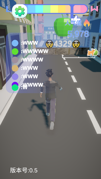 3、将操控甲亢哥在保镖的护送下穿梭于街头巷尾,途中既要躲避热情粉丝的围堵,还要通过各种互动积攒人气,最终达成目标;