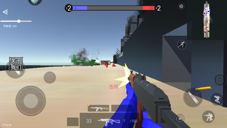 4、进入之后与其他射击手游操作相同,通过左边的轮盘控制角色移动,右边进行瞄准和射击、换弹跳跃下蹲的动作。