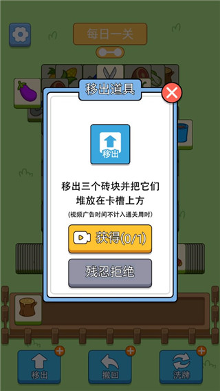 1、游戏中的卡槽只有7个,非常的有限,你需要在有限的卡槽内将可以三消的卡牌进行消除,成功的闯关。