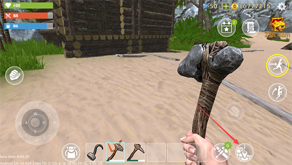 3、不要忽视三大属性:血量、饥饿值、口渴值,达到临界点时,你将会死亡。