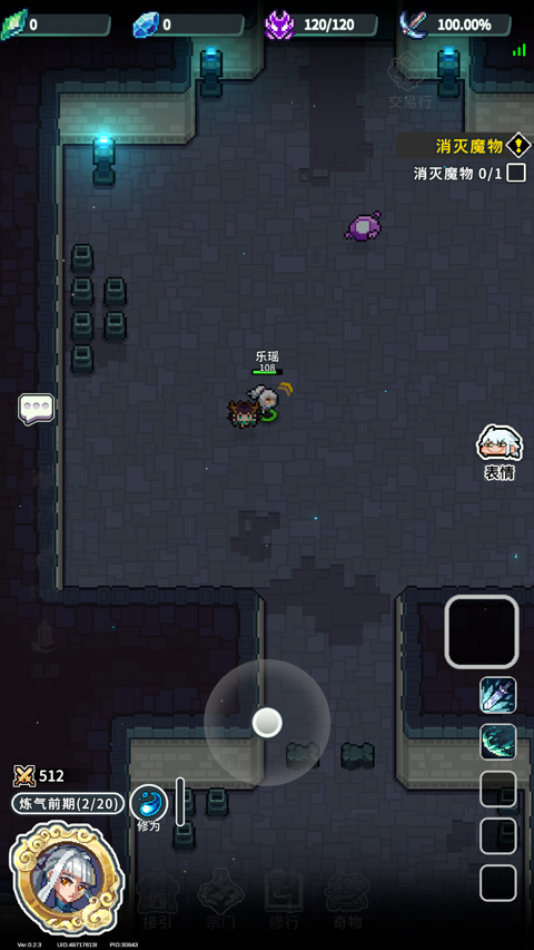 3、采用像素风格的修仙冒险战斗玩法,通过走位来闪避敌人的攻击并使用技能来击败他们。
