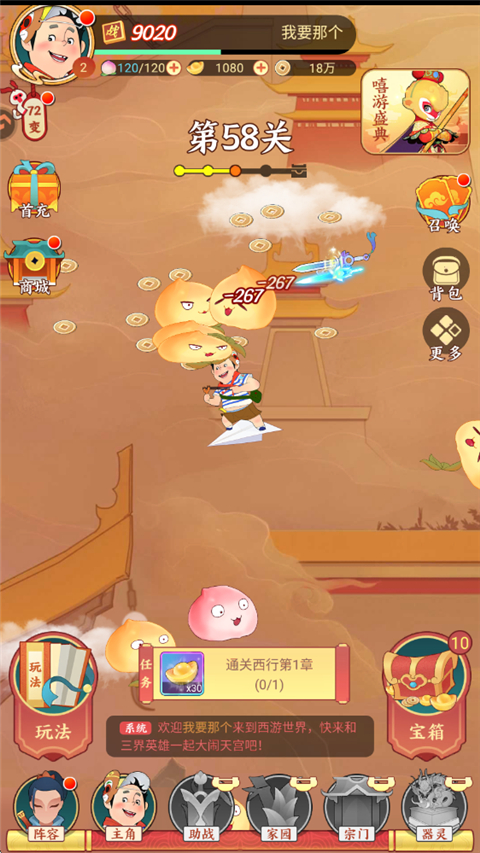 3、是一款放置挂机+卡牌收集类游戏,游戏以中国古典四大名著之一《西游记》为蓝本。