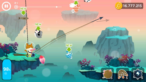 3、抓不同的鱼需要不同的工具,收集各种秘密武器,帮助你更快地更多的抓鱼。
