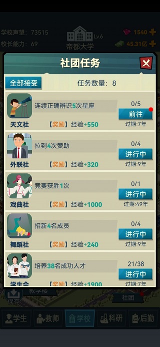 2、模拟经营我的大学破解版各种挑战,想要经营好大学就需要不断挑战探索。