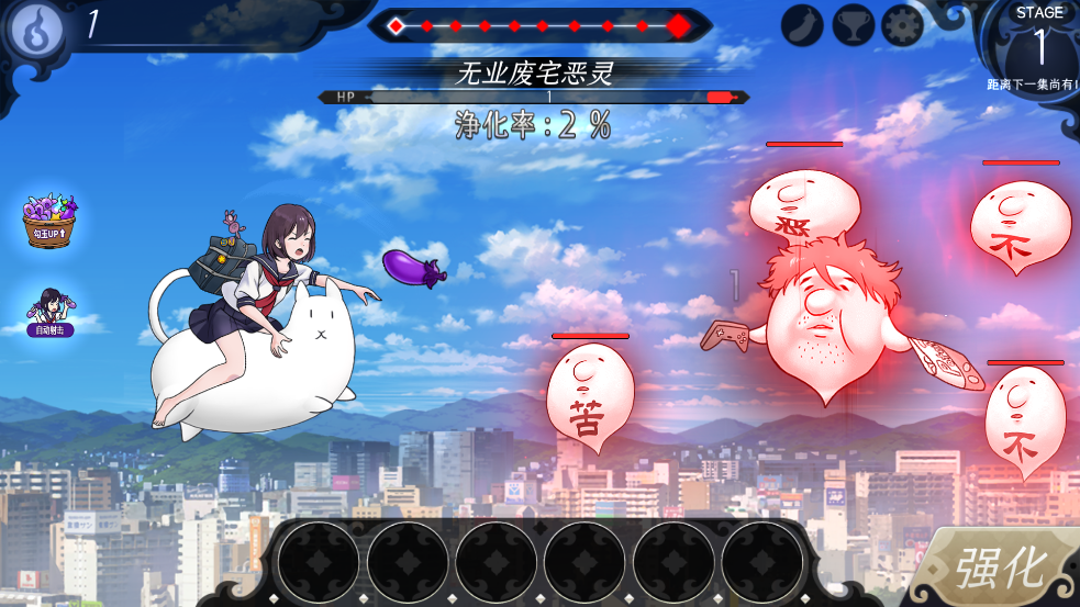 2、升级你的喵咪,提高他们的攻击力,面对强力的boos一点也不虚,战斗就是这么的简单。