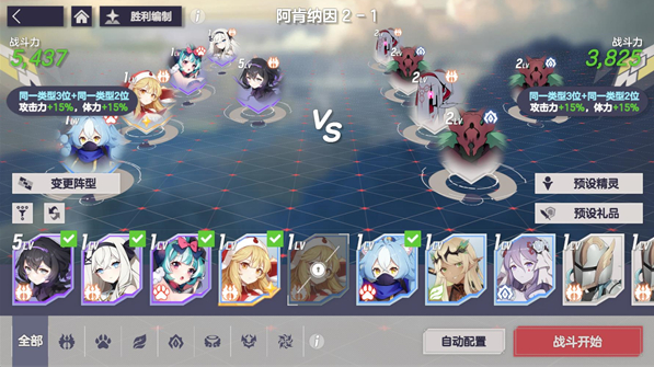 3、选好关卡后你可以选择上阵的精灵角色,安排好阵容后点击战斗开始就可以进入关卡。