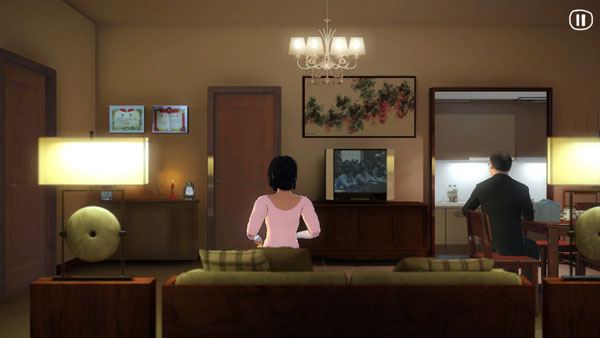 1、3D画面,但是视角是不可调的,你可以与人物剧情互动。