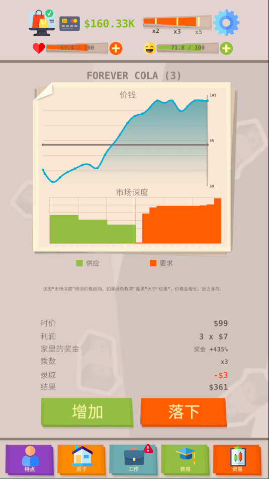2、精彩的游戏体验,自由搜集更多的资源,投资项目。