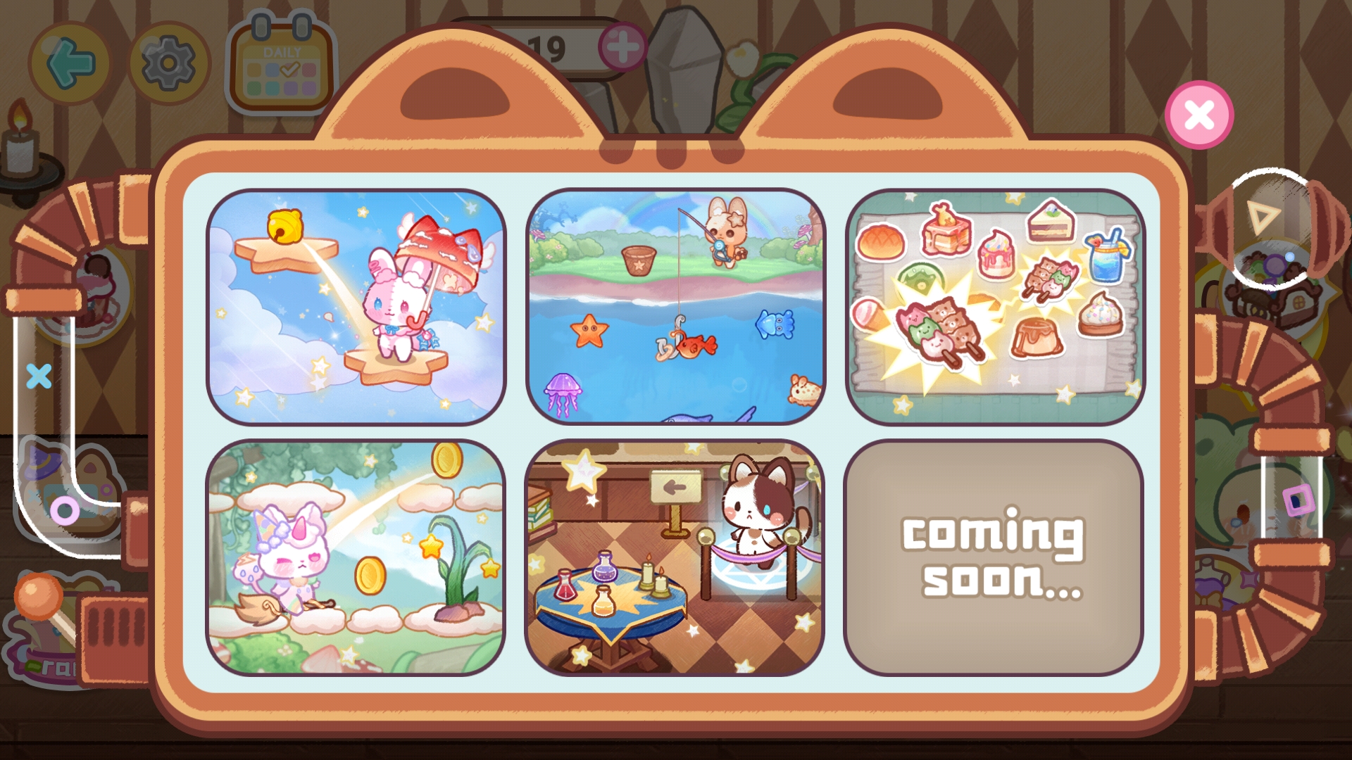 1、游戏以猫咪和魔法世界为主题,打造了一个充满惊喜的休闲养成类世界。