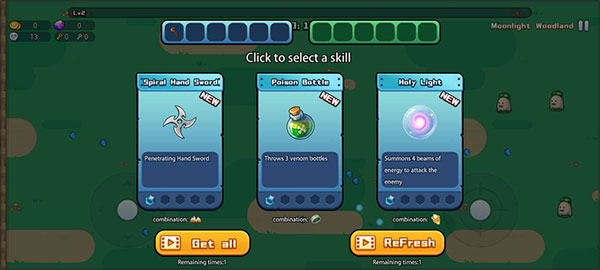 4、需要选择你想要的武器和技能,可以组合成强大的特殊武器,获得更高的攻击力。