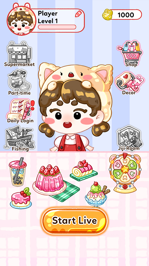 果冻大师中文版下载结合了模拟经营与装扮加吃播的休闲手游,让玩家们可以在这里进行各种挑战,不仅能为你换上好看的衣服,还能制作各种美食,开启一场直播,吸引更多的粉丝,获得金币,开始有趣的吃播玩法吧,一起来看看。