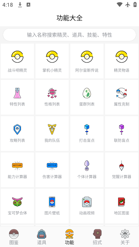 1、可以查询手机神奇宝贝各精灵图鉴,神奇宝贝粉必备。