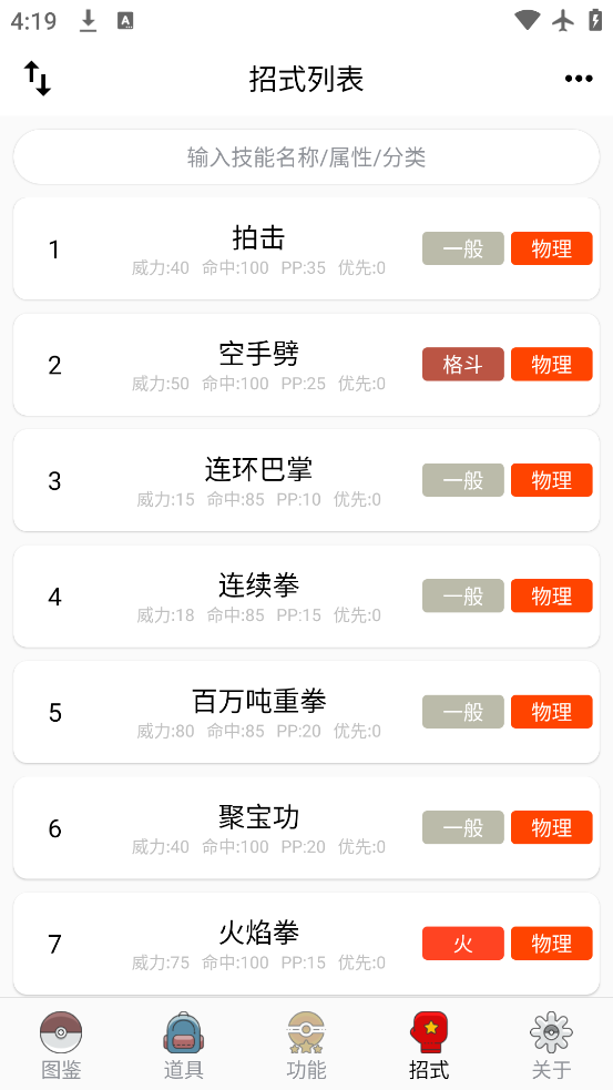 4、口袋妖怪、道具、技能数据集齐。