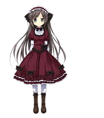 外表看起来像个小女孩。穿着哥特萝莉的服装,像洋娃娃一样可爱,但总是一副无表情的样子,略显机械感。不知为何能消失和出现。主人公们认为她是幽灵。