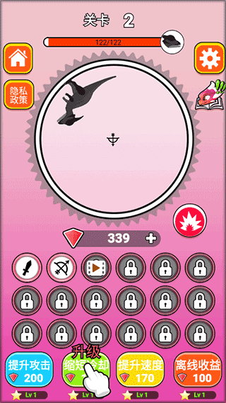 3、玩家可以在闯关的过程中,收集更多的金币,升级技能,变得强大。