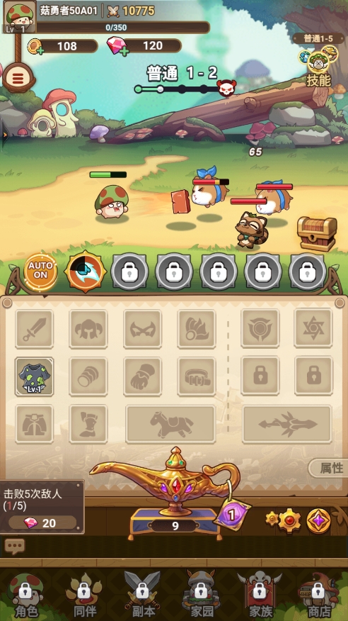 4、在游戏中玩家不需要进行攻击操作,蘑菇会自动进行攻击,只需要根据左下角的任务进行即可;