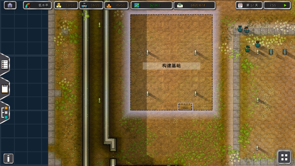 玩家需规划牢房、食堂、浴室等基础设施,并合理布局电力、供水系统(如电缆与水管需避免短路或堵塞)。建造时需满足囚犯基本需求(如居住、饮食、卫生),同时兼顾安全与预算平衡。