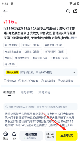5、直接点击需要的账号进入到详情页,点击“立即购买”即可。