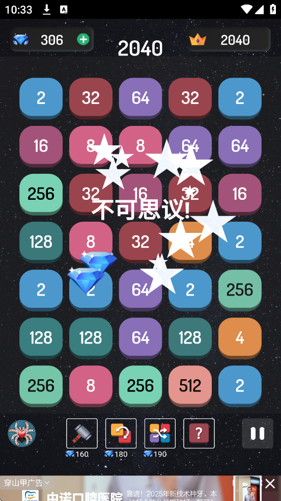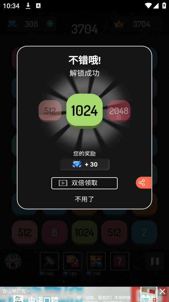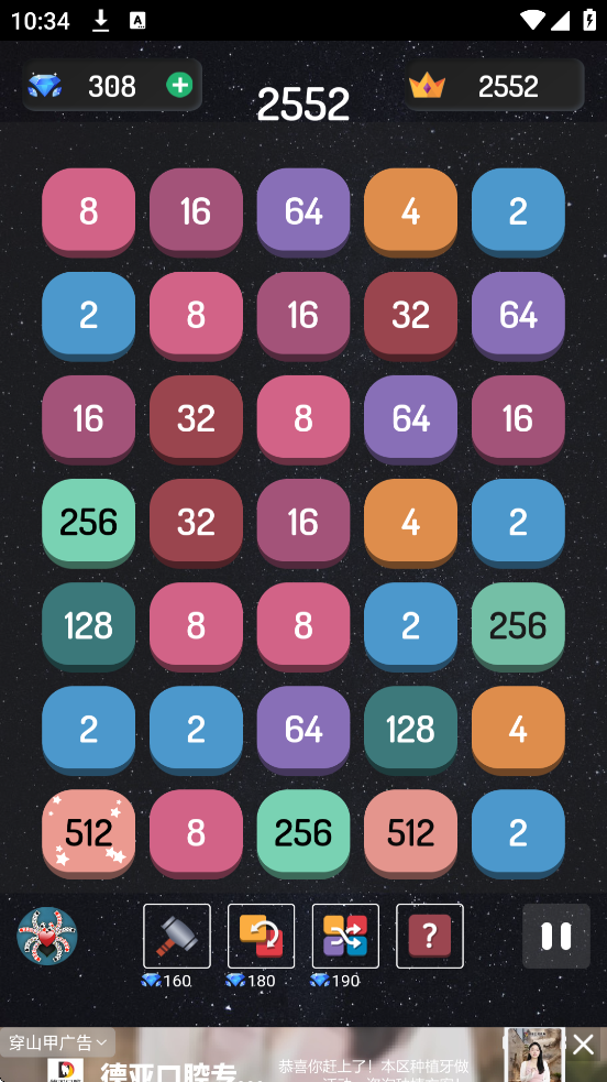 游戏结束:当屏幕填满且无法合并时结束,可使用复活卡继续。