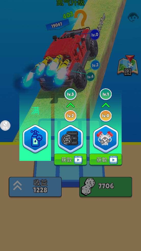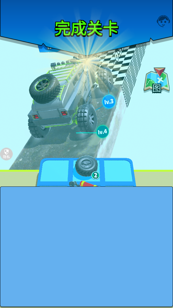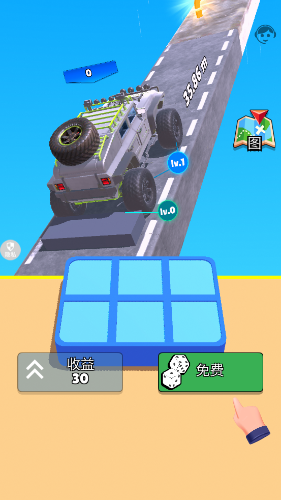 2、玩家只需用一根手指来操控,点击触摸屏幕,小车就能转向或者跳跃。