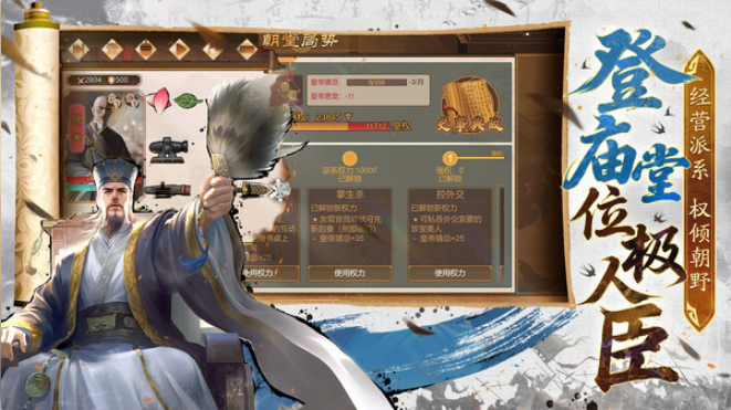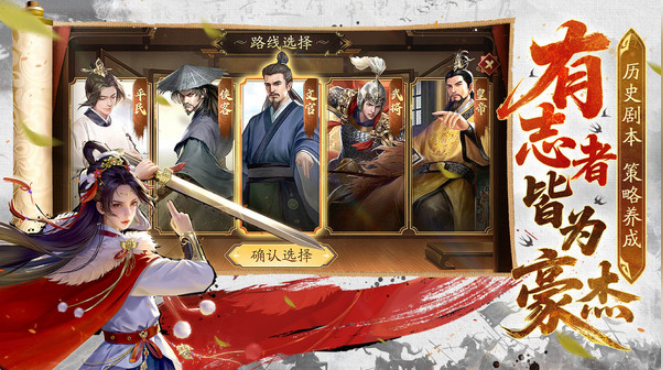 1、角色扮演:选择身份(如皇帝、侠客)后,通过治理朝政、江湖闯荡或舌战群儒等专属路线成长。