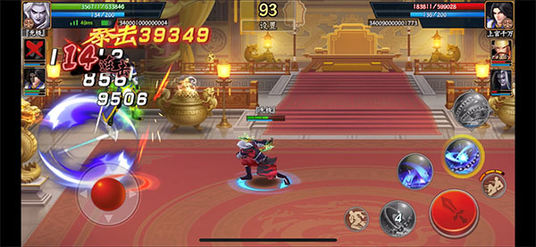 5、玩家每充满一次怒气槽,即可点燃一个怒气格,当三格怒气全部点燃后,玩家即可通过点击头像按钮+必杀技按钮,来释放武将体内的洪荒之力,使其放出超必杀大招,瞬间群秒敌军,获得战斗胜利!