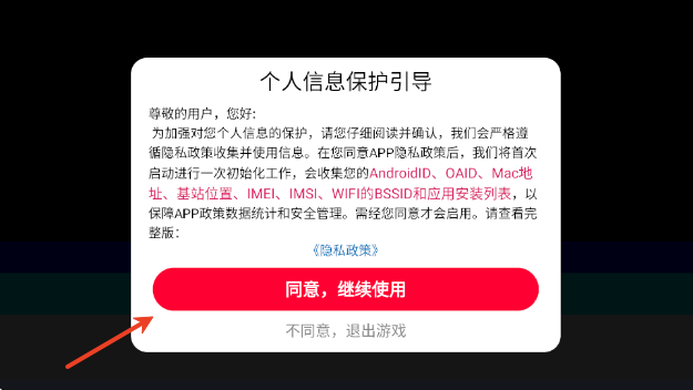 1、在本站下载游戏后直接打开,点击同意继续使用