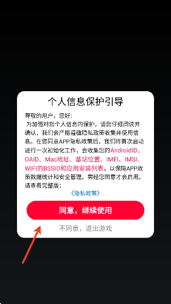 1、在本站下载游戏后直接打开,点击同意继续使用