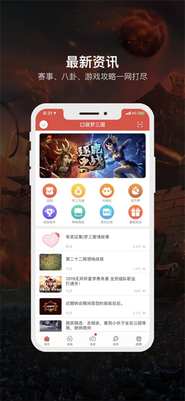 口袋梦三国安卓版下载安装是一款游戏辅助软件,软件内为用户提供丰富的游戏资讯,用户可以通过软件查询相关游戏攻略,更多惊喜等你来发现,这么好用的软件,你还等什么?感兴趣的小伙伴快快下载前来体验吧!
