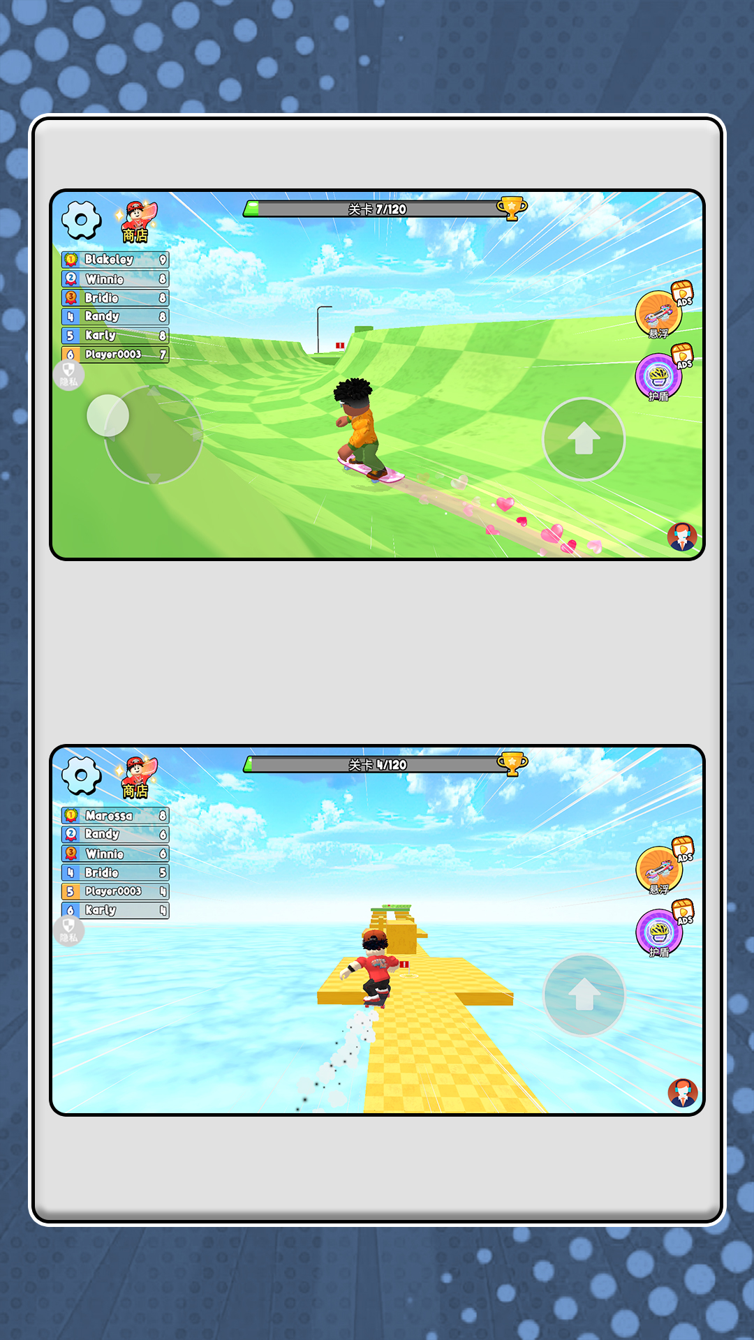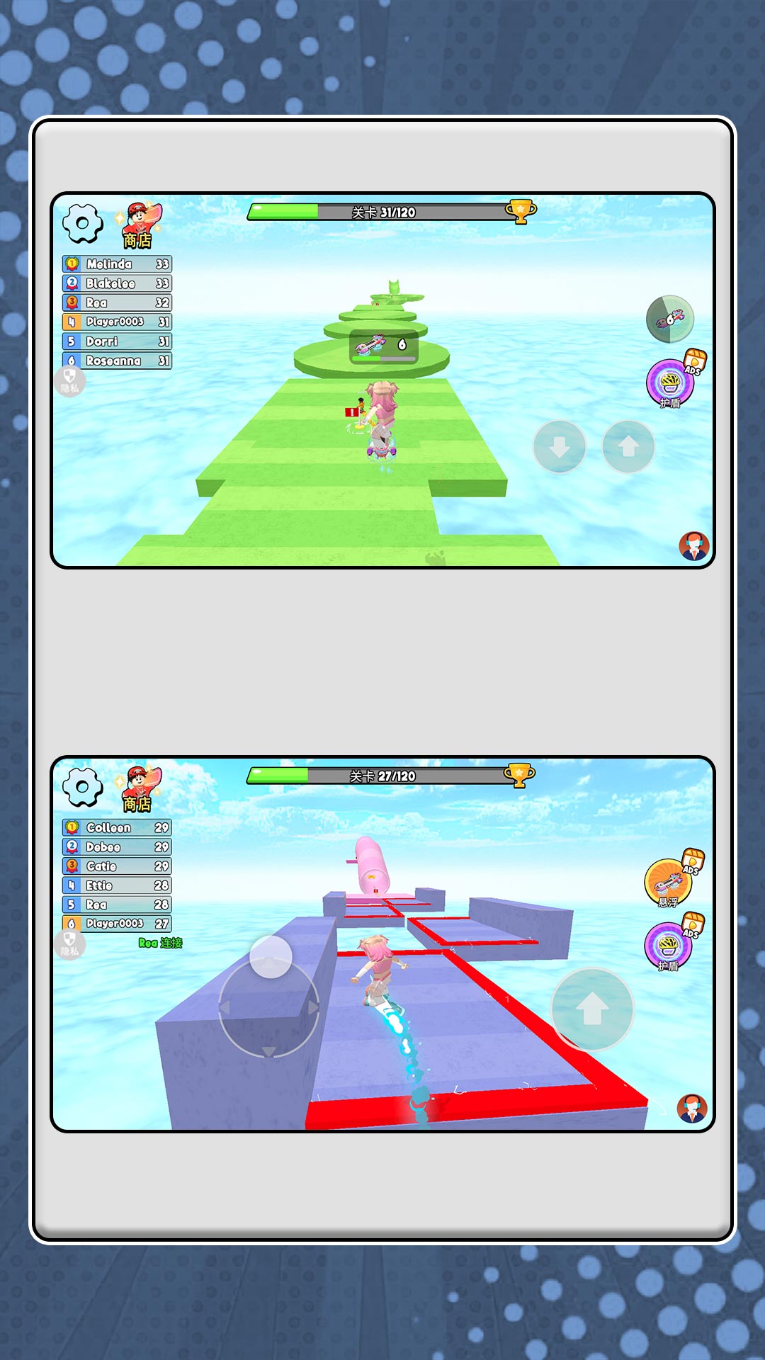 1、在比赛中,玩家需要尽最大努力在赛道上快速前进,超越对手,最终达到终点。