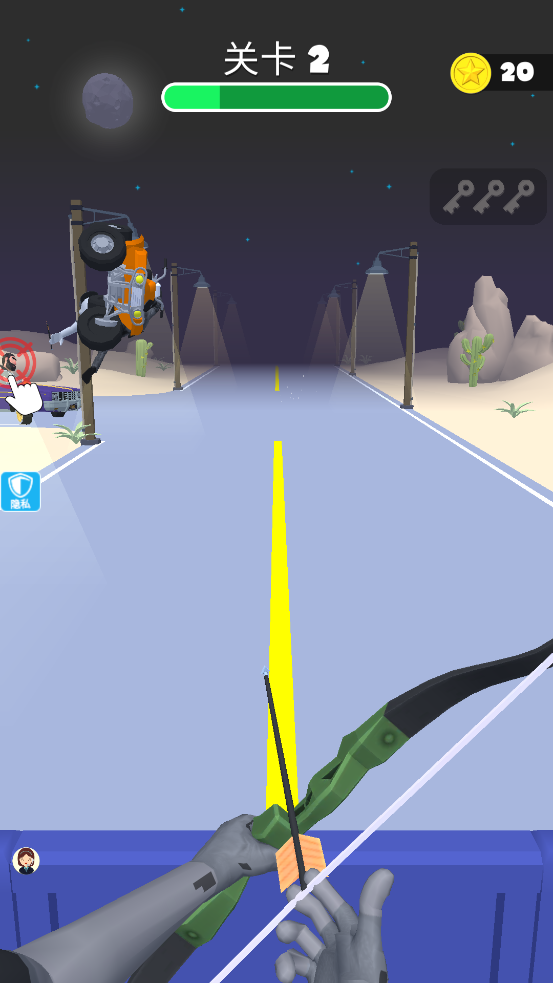 3D弓箭手游戏官方版下载是一款紧张刺激的射箭闯关游戏。游戏中玩家将扮演成为隐秘的弓箭手潜入危机四伏的战场,利用地形掩体隐藏自己的身形射杀各式各样的敌人,每次拉弓射箭都要精准命中目标,弓箭偏离很容易暴露自己的行踪,必须要保证基本命中率才能成功完成关卡挑战,众多特殊效果的箭矢也能随意挑选利用,通过更换箭矢的方式可以形成独特的作战效果。