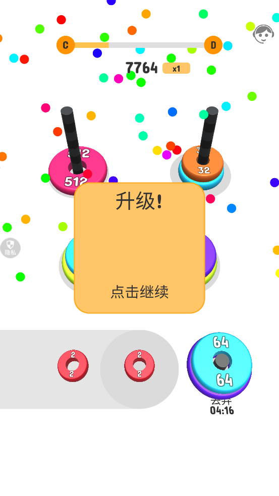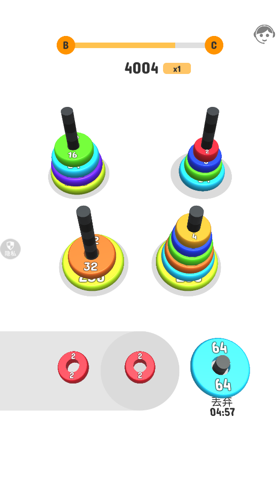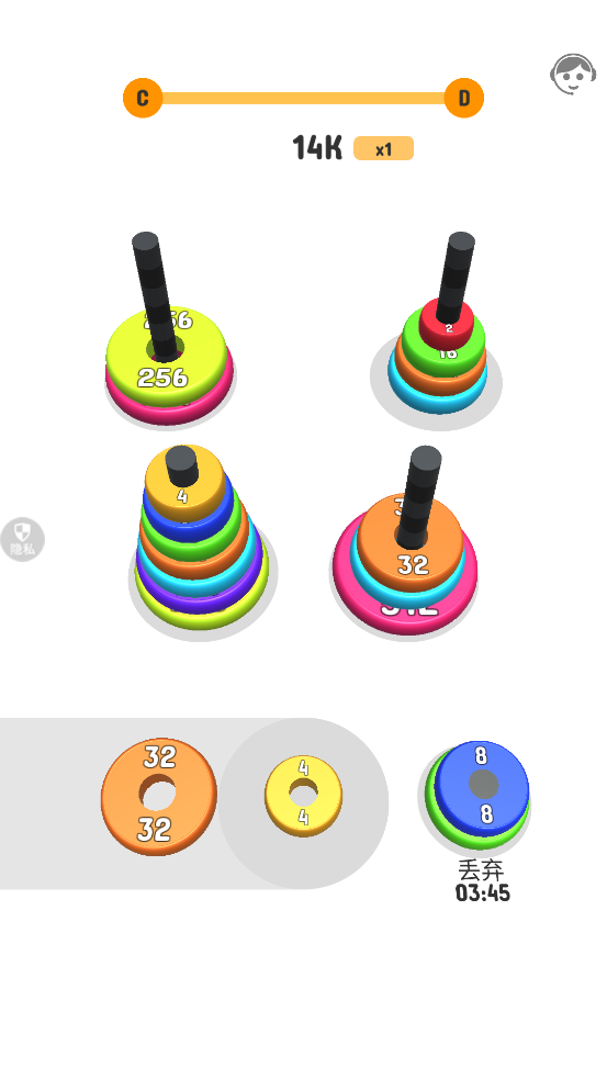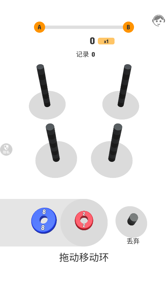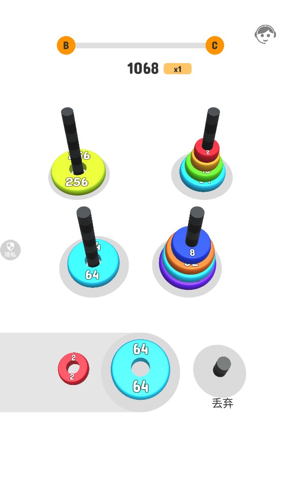 1、玩家需在有限的木桩上进行数字管理,通过不断移动圆环使相同数字相遇合并,逐步向更高数值推进。
