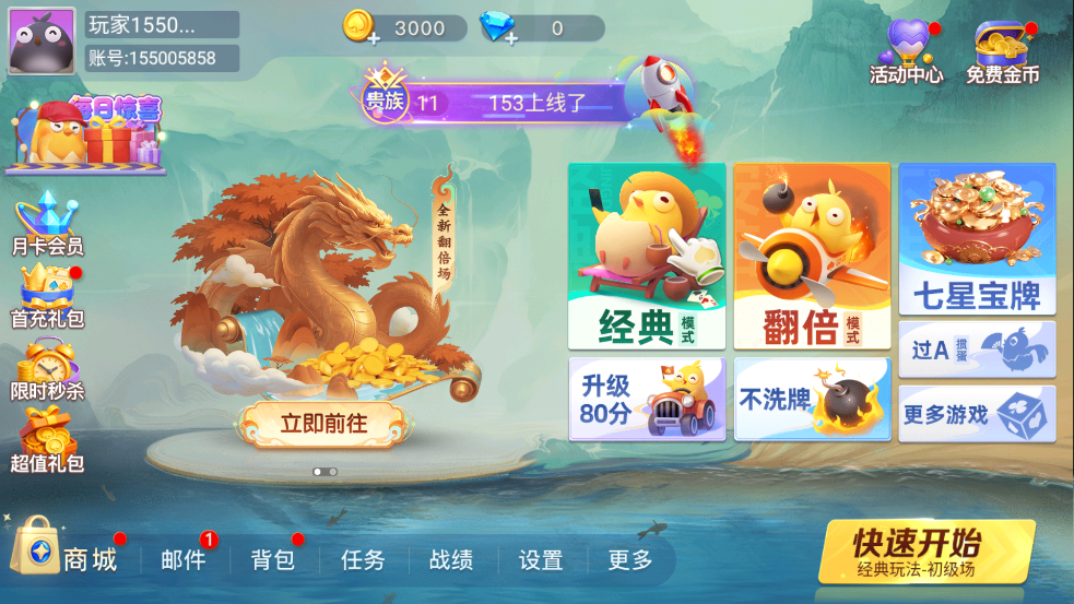1、经典掼蛋,二人掼蛋,不洗牌,团团转,超级翻倍场刺激不能停。