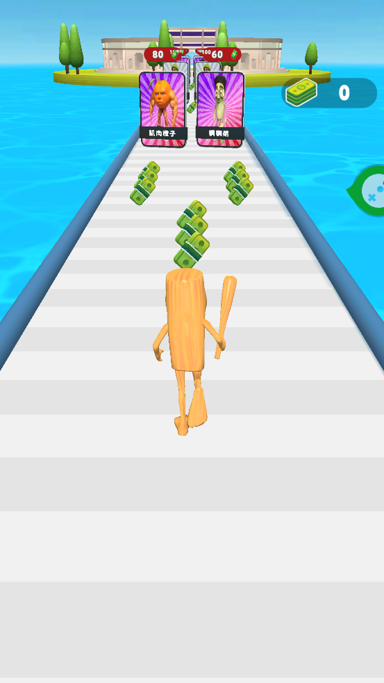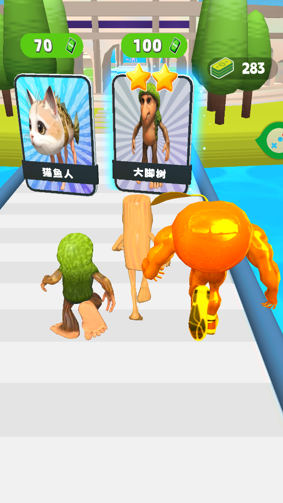 1、玩家在跑酷过程中收集金钱、捕捉伙伴,利用卡牌系统参与对决争夺胜利。