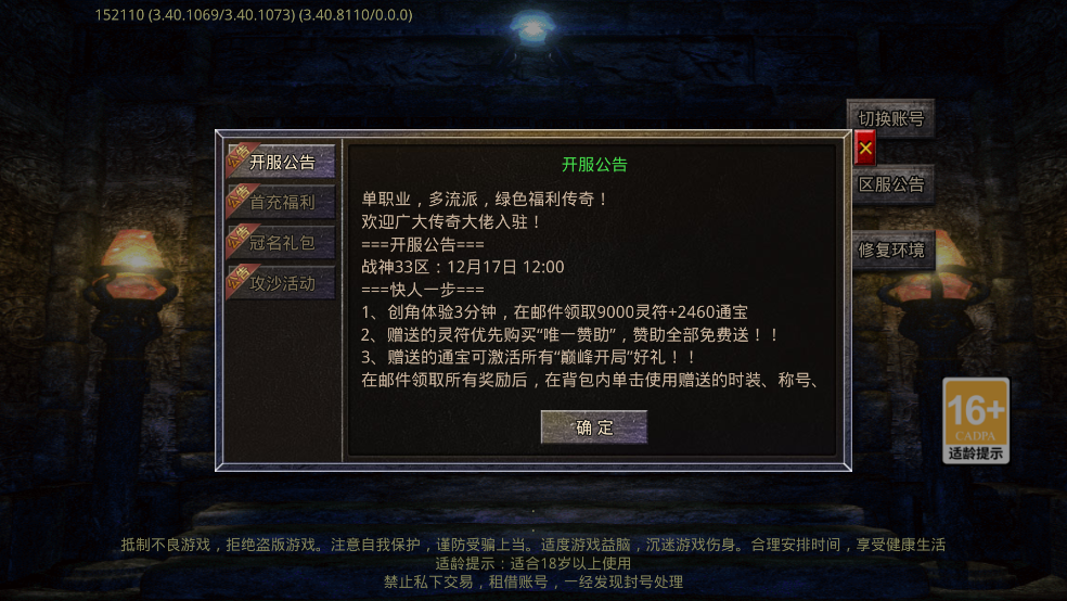 福利传奇,永久每日送20万灵符+20万元宝 十年传奇之梦,如今再现当年的辉煌! 无兄弟,不传奇,赶快加入吧! 热血龙城,等你来战!昔日的兄弟都在沙城等你!