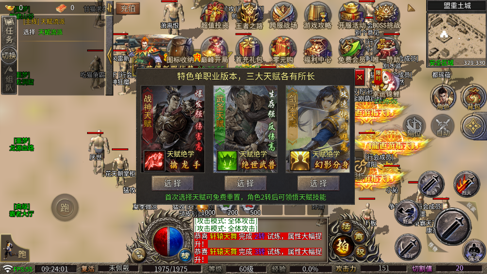 2、经典战法道三职业设定,自由PK。