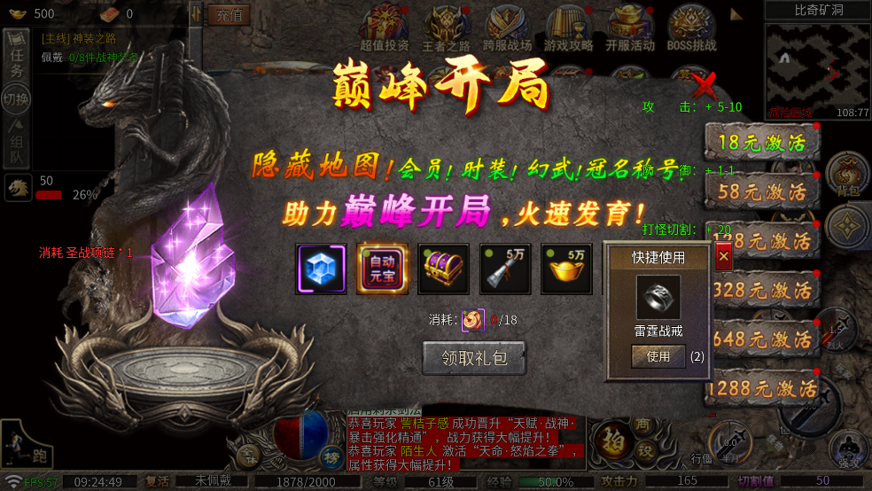 4、设计了任务、活动、副本等多种升级模式,升级速度较之前的作品更为轻松快捷。