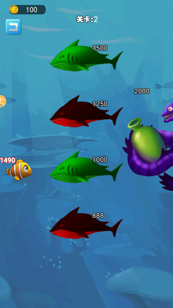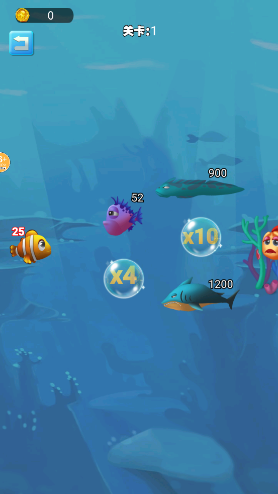 3、生存规则简单明确,遵循弱肉强食的自然法则,只能吞食比自己小的鱼类,遇到大型掠食者必须及时躲避,规则直观易懂。