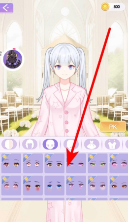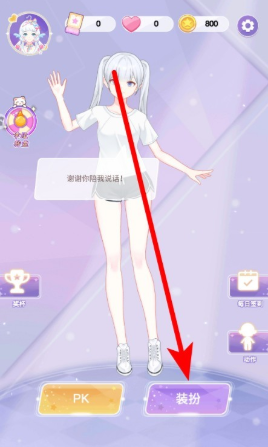 1、进入游戏,点击装扮按钮,进入装扮界面,选择发型、服饰、妆容等换粉色睡衣、选新眼妆,自定义角色外观,保存装扮方案。