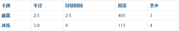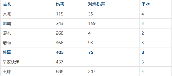 最后,我们来仔细看看藤蔓是如何造成伤害的。被困住的目标每0.5秒会受到一次伤害,总共持续2.5秒,所以总共有5次伤害。按照锦标赛标准,这意味着对普通目标每秒造成81点伤害,对皇冠塔每秒造成30点伤害。